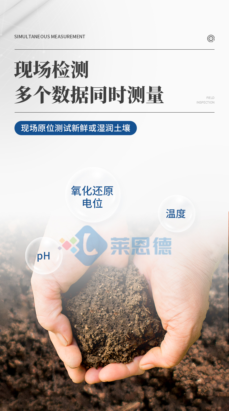 ●配套專用ORP電極、參比電極和不銹鋼空心杄,可直接插入土壤